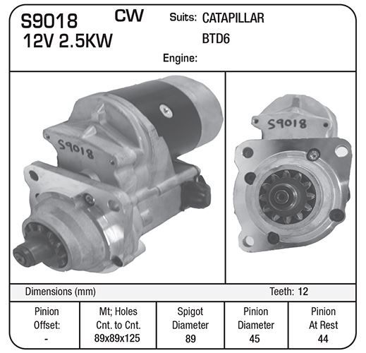 STARTER G/R TYPE 12V 12T 46MM SUIT BTD6