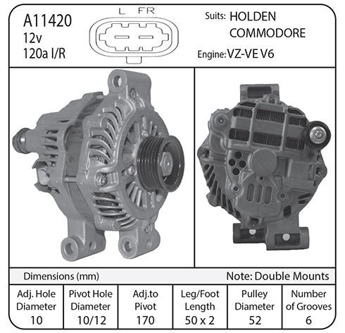 ALT 12V 120A VE-VZ COMMODORE 3.6L NON RVC